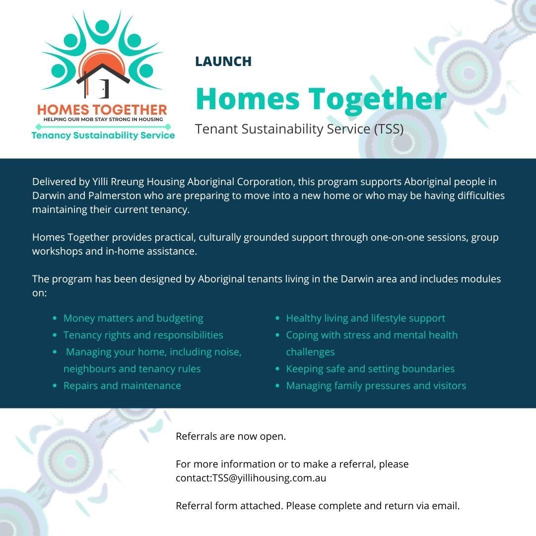 Yilli Rreung Housing is pleased to announce the launch of our Homes Together – Tenant Sustainability Service (TSS) Program.